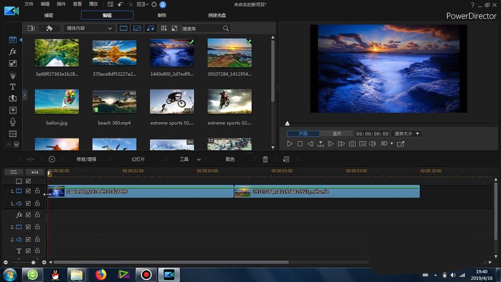 3、導入之后的素材,將其導入到威力導演的時間線視頻軌道上,保證首尾相連