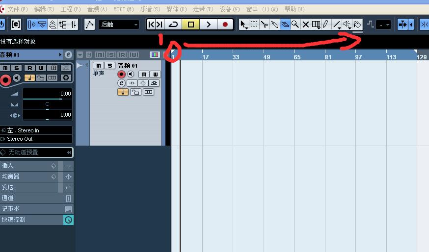 如圖,用鼠標右擊紅點區域,選擇添加音軌軌道,此時會出現一條音軌,你可以將需要錄制的伴奏拖到這條音軌上,