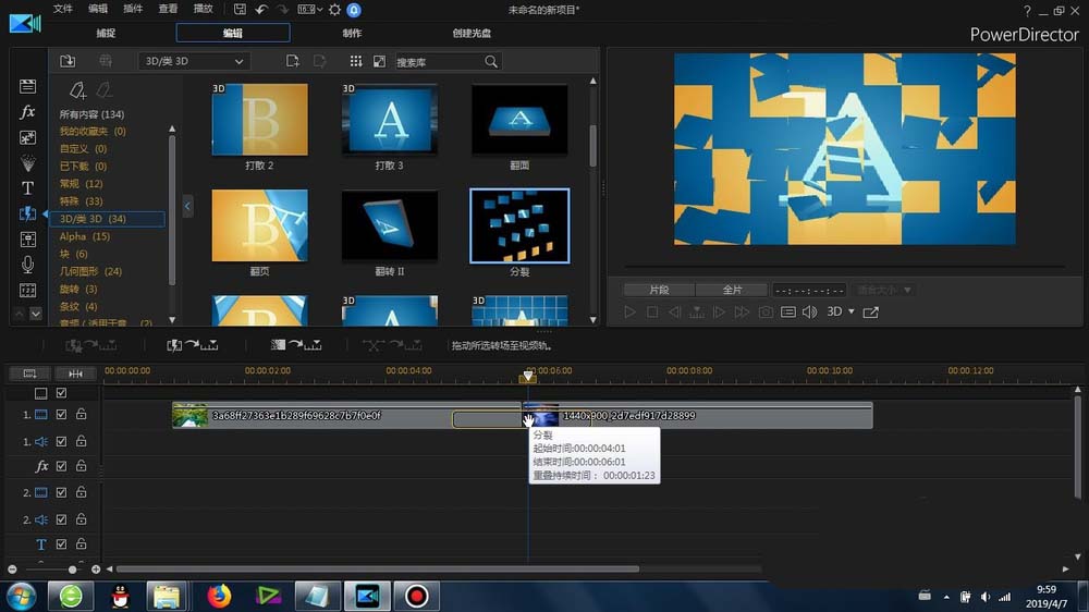 威力導演中自帶了分裂轉場效果,想要使用這個效果,該怎么使用嗯?下面我們就來看看詳細的教程。
