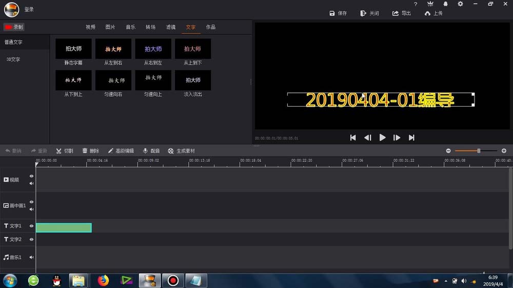 1、最開始的就是找到這個靜態字幕效果的位置,是在拍大師的-文字-基本文字-里面
