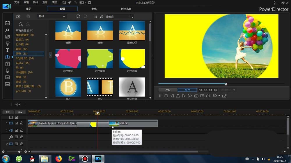 1、這里的“彩色圓圈”轉場是在威力導演里面的-轉場-常規-里面可以找到