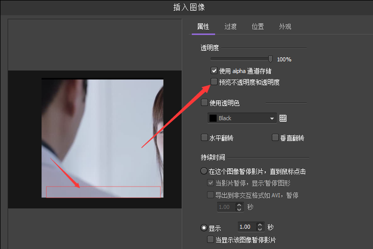4、彈出了的插入圖像的界面中,勾選上預覽不透明和透明度的選項。