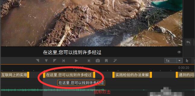 如果是在字幕添加完成才發現有錯誤,該怎么辦呢?首先找到出錯的字幕塊,用鼠標雙擊,