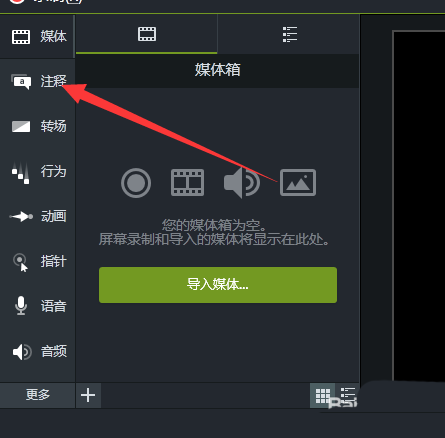 2、進(jìn)入到Camtasia的工廠界面之后,我們來(lái)點(diǎn)擊注釋。