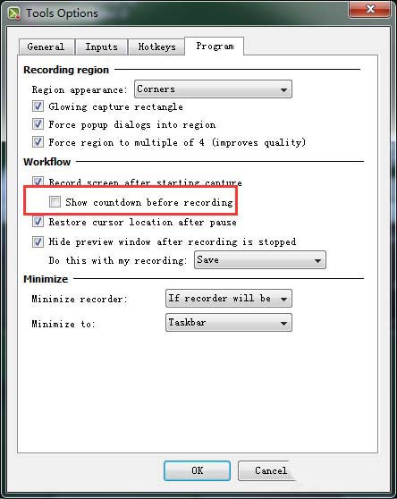 5、如圖所示,去掉顯示開錄前倒數的勾選(show countdown before recording )。