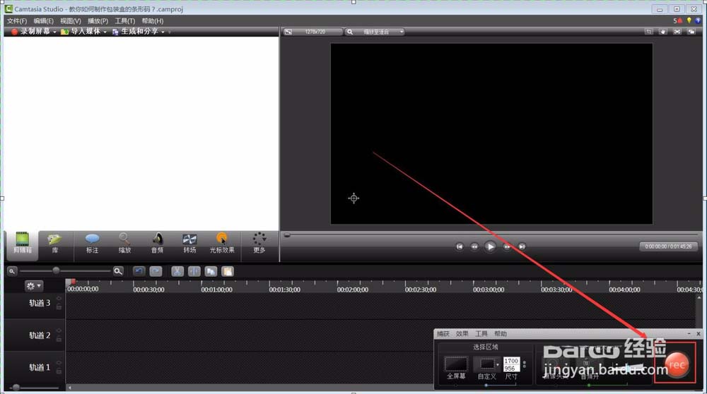 1、啟動Camtasia Studio 8,點(diǎn)擊“錄制屏幕”功能;
