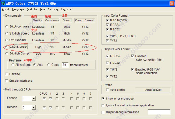 3、之后需要進行編碼器設置,在編碼器設置窗口中照圖里選擇S3即可,其他不用改動,若是出現視頻帶有水印的現象請查看是否使用過授權碼。