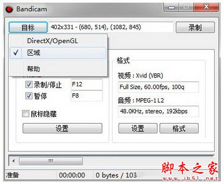 錄制:Bandicam可全屏和窗口(區(qū)域)錄制