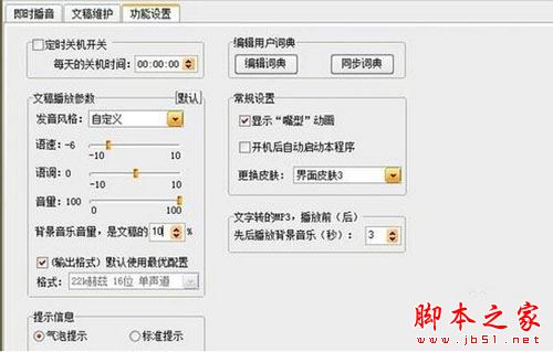 在功能設(shè)置選項卡里,可以把語速降低一些,設(shè)置背景音樂是文稿音量的10%就差不多了