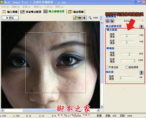 第三步,點擊設備噪點配置,然后在照片上拖選出一個框,再點擊自動配置(注意:拖選時要選中皮膚,以便自動配置)