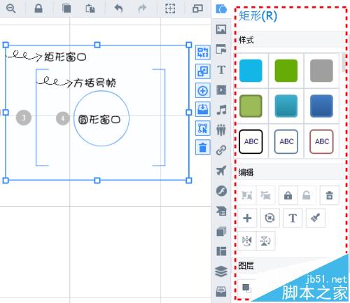 3、由于不可見幀在演示時是不顯示出來的,所以只有一些基本的屬性可以自定義。然而可見幀的話,可以自定義窗口邊框顏色,填充色,給窗口添加文字等。