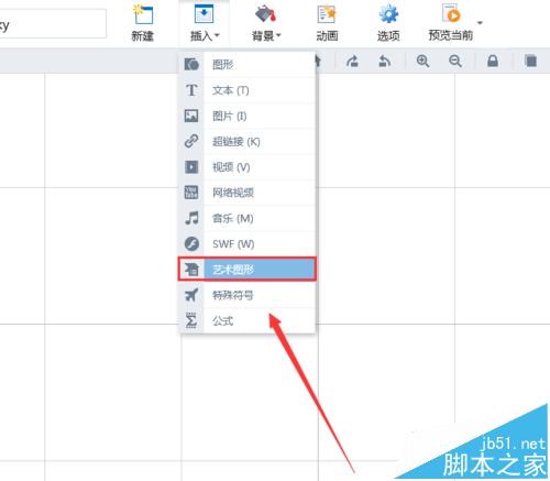 3、我們還有另外一種方式插入藝術(shù)圖形的,這里我們就是需要點擊我們界面的最右邊的藝術(shù)圖形圖標,在下已經(jīng)給大家標出來了。我們只需要點擊就可以了。