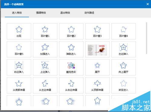 3、然后我們就是選擇動畫效果了,這里我們可以看到動畫效果非常的多,首先我們設置進入效果,這里根據大家需要選擇就可以了,然后就是退出效果的設置,這個和進入效果是一樣的。