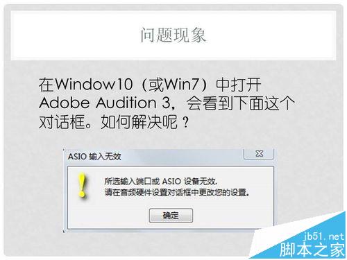 Win10或Win7 中AU3 不能錄音的問題解決,在Window10(或Win7)中打開Adobe Audition 3,會看到下面這個對話框。如何解決呢?百度一下,可以看到很多種解釋,經筆者測試最主要是從以下兩方面入手: 檢查AU3的設置和檢查錄音設備的設置。
