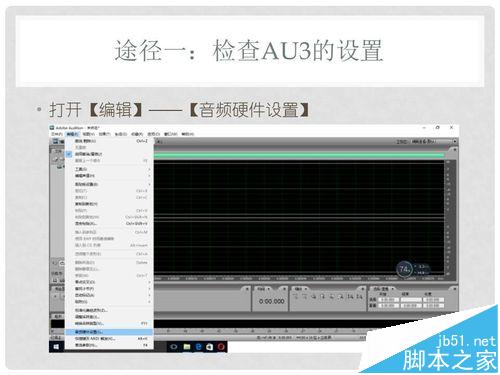 1、打開AU3的【編輯】菜單——【音頻硬件設置】