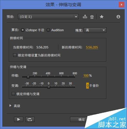 3、這里需要調(diào)整變調(diào)項(xiàng),伸縮是用來調(diào)整速度的。變調(diào)值越高則聲音越尖銳,似女聲,反之側(cè)似男聲。