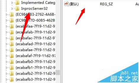 4、打開該項找到InprocServer32,點擊選中右側的默認