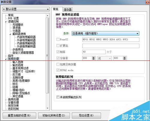 9、如圖選視頻處理里條件選 總是使用 選項,點關閉,是的直接點關閉就可以了,軟件會自動保存,然后重開播放器,就可以了。我遇到的都是第二種方法解決的嗯,就這樣了。