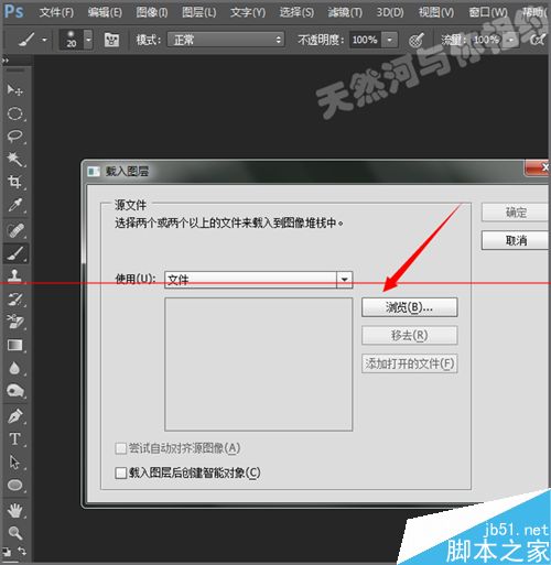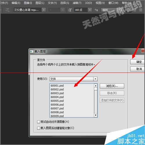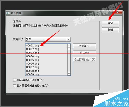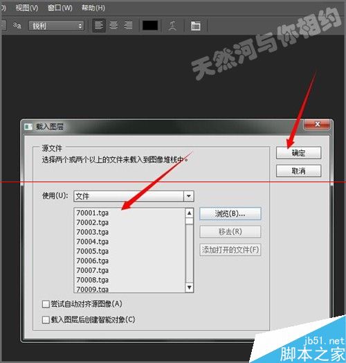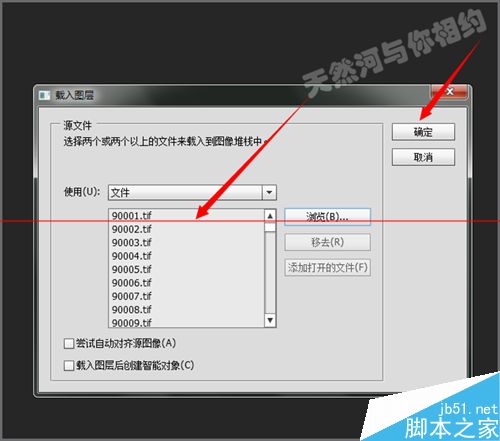 4、接著我們再試一下tif格式的序列圖片。我們選擇文件菜單下的腳本---將文件載入到堆棧,然后在彈出的面板中選擇瀏覽,然后打開我們的tif序列,點擊鍵盤上的ctr+a全部選擇,點擊確定。