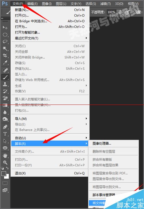 1、首先我們點擊文件下拉菜單中的腳本----將文件載入到堆棧。