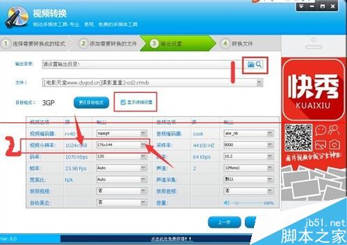 4、點(diǎn)擊下一步進(jìn)入,選擇存儲(chǔ)位置。設(shè)置好后這個(gè)時(shí)候需要降低分辨率,選擇詳細(xì)設(shè)置,在其中視頻分辨率處我們可以看到原來(lái)的分別是多少,選擇適合我們手機(jī)的分辨率。這里還可以進(jìn)行其他的操作,設(shè)置完成后點(diǎn)擊下一步