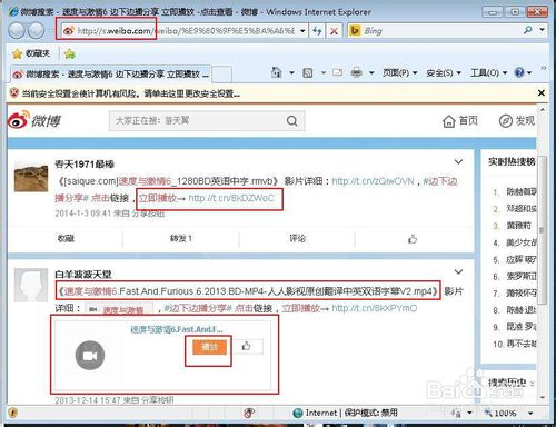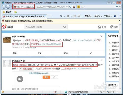 3、我們點擊“搜索資源”,會打開微博的搜索頁面,并顯示其他網友分享出來的連接,