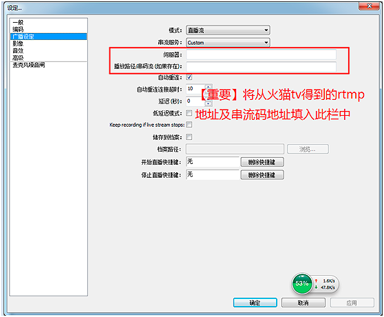 3、如何獲得火貓tv的RTMP地址 和視頻流名稱