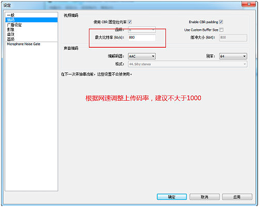 上傳碼率,根據(jù)個人網(wǎng)絡(luò)而定 建議 400-1000