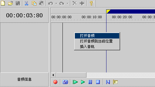 你可以在音樂編輯區用鼠標右擊彈出的菜單中的選項“打開音頻”來打開你要播放的音樂 文件: