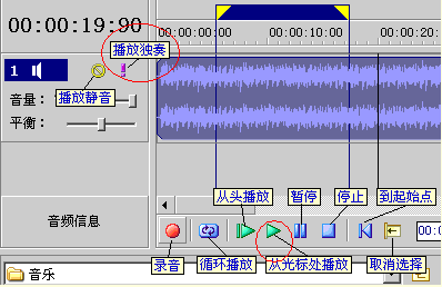 然后用戶可以點擊下圖中的“播放獨奏”或者“從光標處開始播放”的按鈕來播放音樂