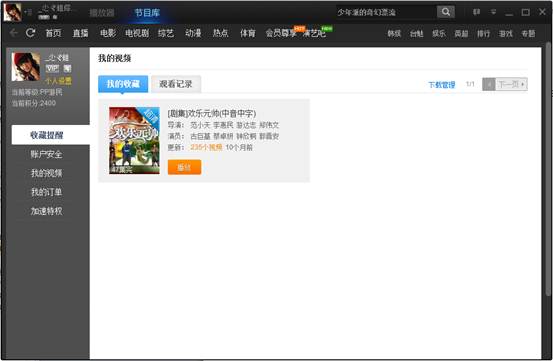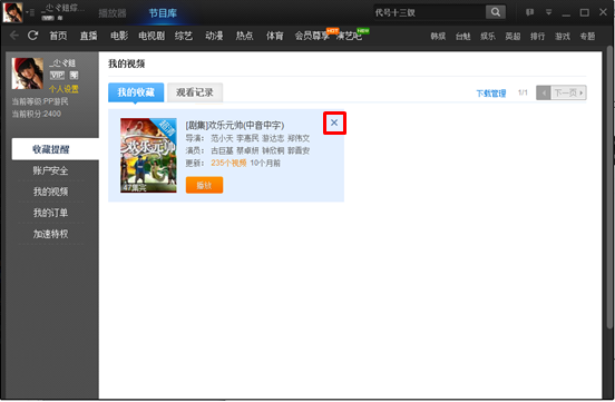3)    收藏成功后您可以在“個(gè)人中心”的“收藏提醒”欄中直接看到剛才您收藏的頻道信息,以后可以直接點(diǎn)擊播放。