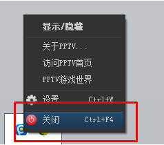 您在操作系統(tǒng)托盤(pán)中找到PPTV圖標(biāo),點(diǎn)擊鼠標(biāo)右鍵,選擇“關(guān)閉”即關(guān)閉PPTV程序。