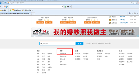 1) 請(qǐng)到http://www.pptv.com 首頁(yè),點(diǎn)擊“客戶(hù)端下載”
