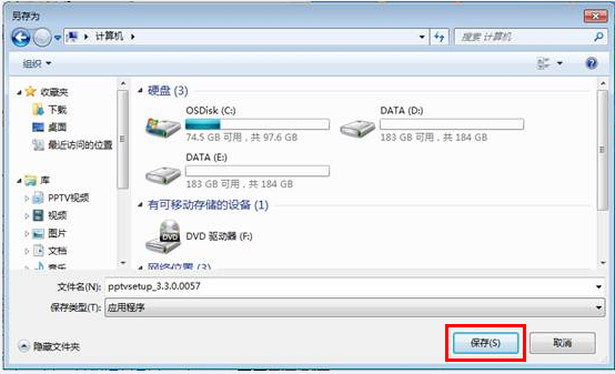 3) 選擇您的存放“PPTV網(wǎng)絡(luò)電視”的位置,點(diǎn)擊“保存”