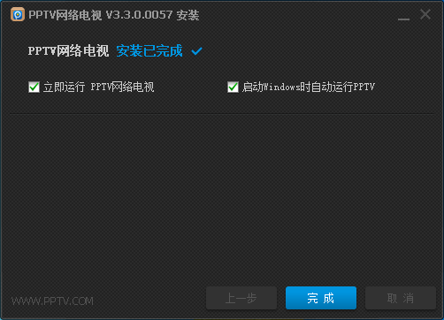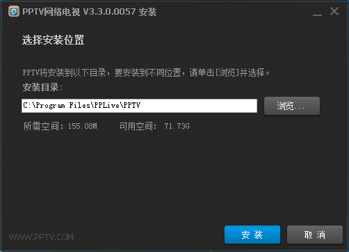 1) 雙擊PPTV網(wǎng)絡(luò)電視安裝包(比如:“pptvsetup_3.3.0.0057.exe”),開(kāi)始安裝