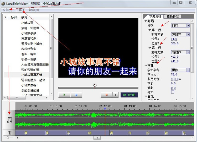 5、打開字幕編輯器KaraTitleMaker,文件-項(xiàng)目-導(dǎo)入歌詞