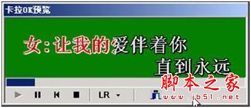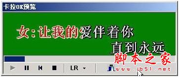 每完成一句或一首歌詞的取時,你都可以隨時點工具欄上的“卡拉OK預覽”按紐,彈出一個預覽窗口,顯示預覽效果: