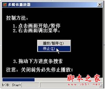 這是有視頻文件的情況。這個播放器的控制很簡單,用點擊鼠標或按回車鍵即可開始或暫停。