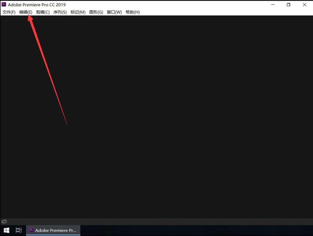 3、打開Pr后,點(diǎn)擊軟件頂部工具欄上 的“編輯”。
