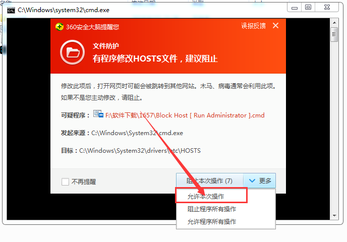 1、在本站下載程序并解壓后,雙擊【Block Host [ Run Administrator ].cmd】屏蔽驗證