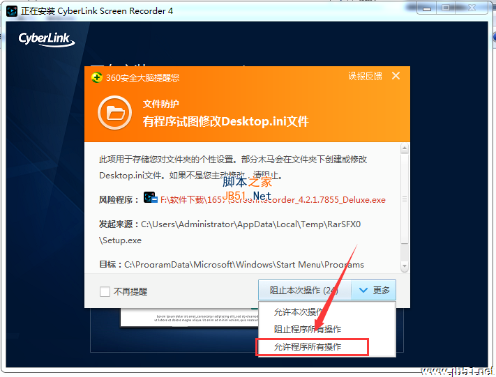 6、在安裝過程出現如下圖時,選擇【允許程序所有操作】