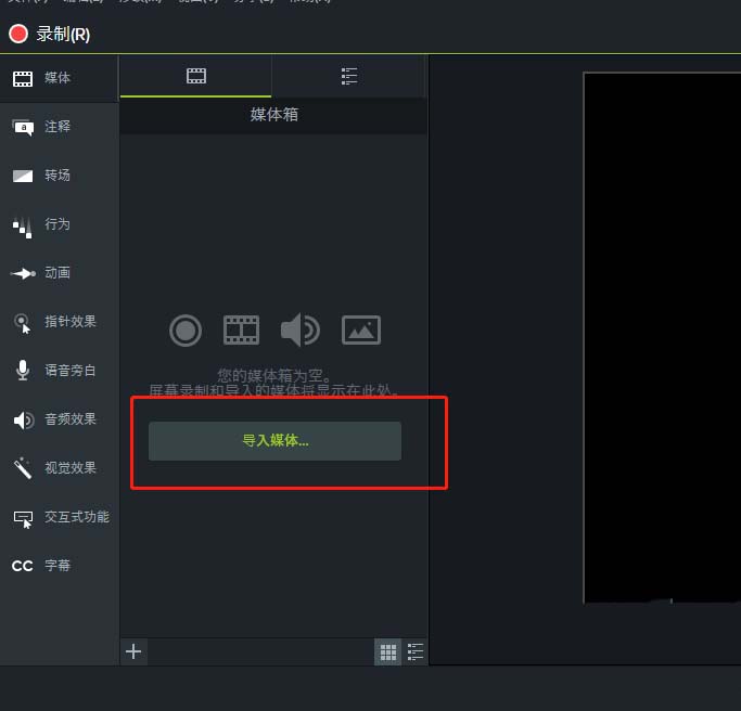 2、新建了一個Camtasia 9項目之后,在這個項目的媒體選項中有一個“導入媒體”命令,單擊執行該命令。