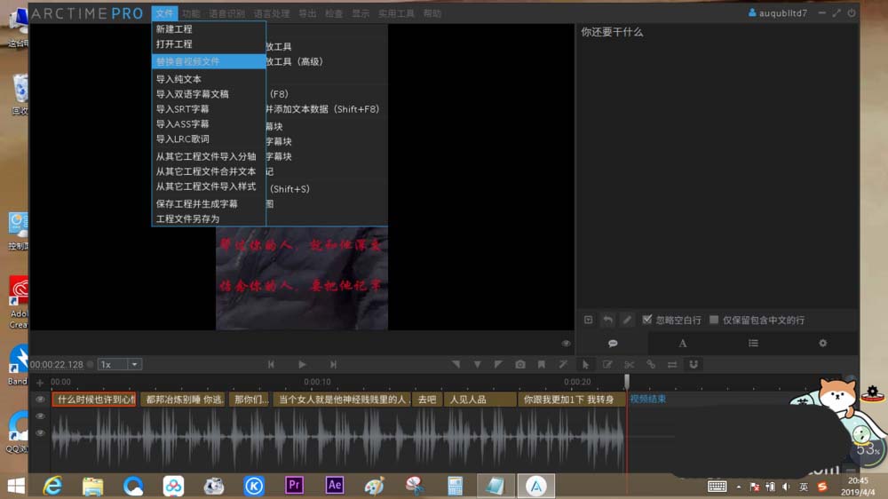 1、打開ARCTIME,在文件中選擇導入一段視音頻文件。