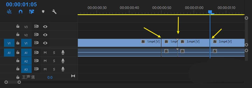 1、把時間軸拉到過渡處,按住shift+<-往左移動五幀進行切割,回到過渡出,往右兩下shift+->移動十幀進行切割。
