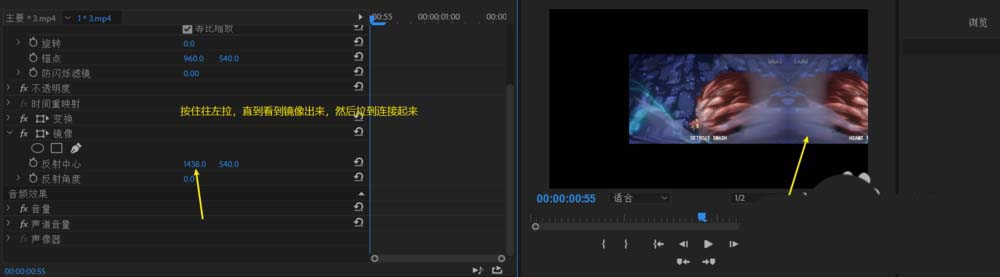 6、再拉一個鏡像出來,再次找到控件,這次,角度調成180,繼續往左拉出第二塊鏡像再粘貼起來