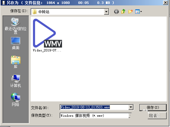 暫停之后可選擇繼續、保存、丟棄,選擇前者會繼續錄制視頻,選擇后兩者都會結束錄制。點擊保存后會彈出如下窗口進行保存,可自定義保存地址和文件名,完成自定義后點擊保存視頻即保存下來了,程序此時一般會自動跳轉默認播放器將保存的視頻播放出來,讀者此時可預覽視頻信息。