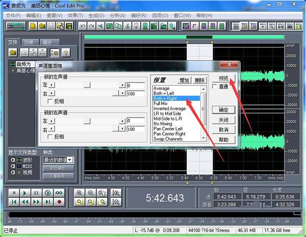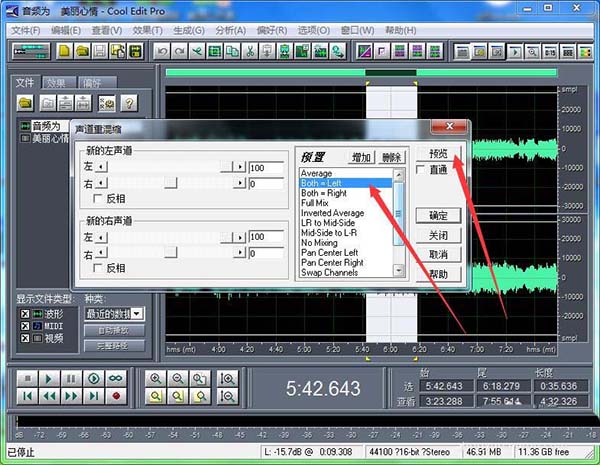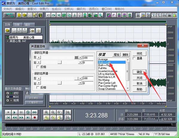 6、小編這里確定是左聲道沒有人聲,可以作為伴奏。先全部選取,再直接選擇“both-left”,點(diǎn)擊“確定”即可。