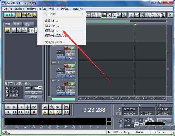 1、打開cooledit軟件,依次點(diǎn)擊”插入“—”視頻文件“,如圖。
