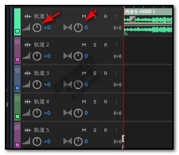 1、我們看音軌這里,每個(gè)軌道都有一個(gè)圖標(biāo),如下圖所示。