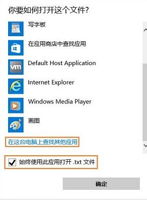 2、 點擊“更多應用”,下拉到最下面,勾選“始終使用此應用打開.txt文件”,然后點擊“在這臺電腦上查找其他應用” ;
